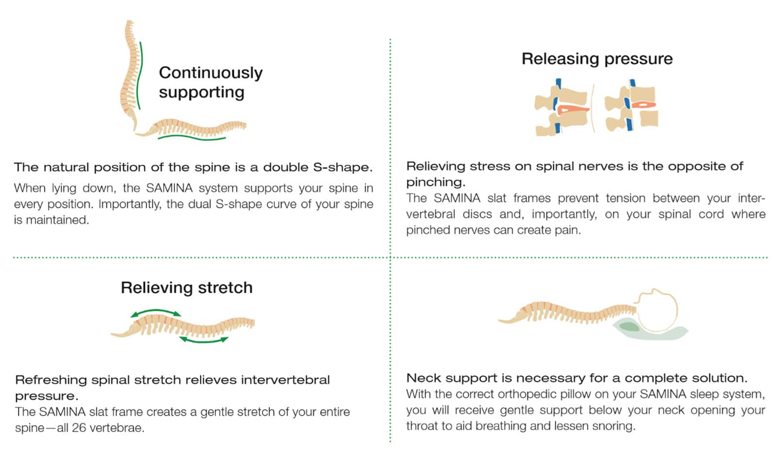 SAMINA sleep systems are the choice of many doctors and other health and wellness professionals. Most importantly, they recognize the back support a SAMINA bed offers, as well as, the health benefits from a better sleep environment. Read their Professional Opinions to learn more.